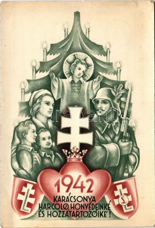 1942 Karácsonya Harcoló honvédeinké és hozzátartozóiké. Leventeifjúság... https://www.darabanth.com/en/421-Online-auction/421.0/Postcards/Militaria~1500032/1942-Karacsonya-Harcolo-honvedeinke-es-hozzatartozoike-Leventeifjusag-honvedkaracsonya-~II2667497