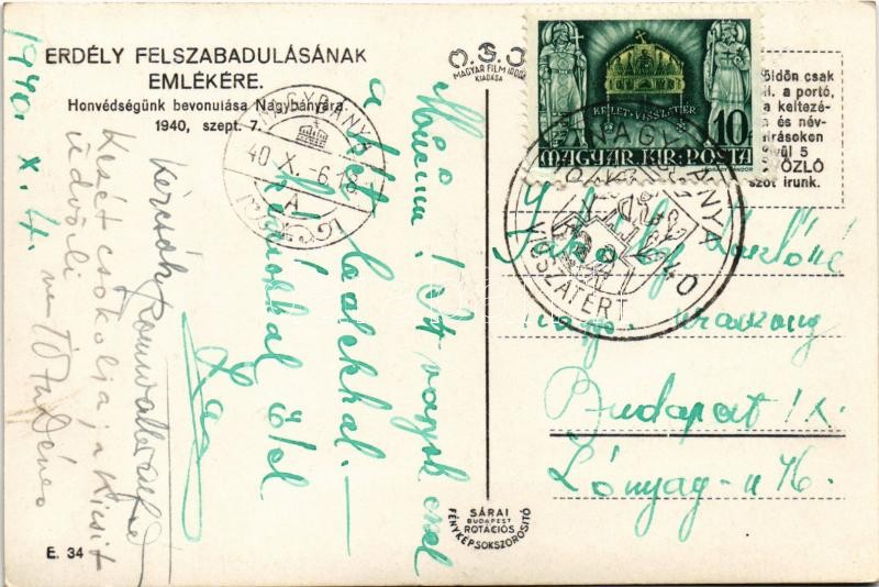1940 Nagybánya, Baia Mare; bevonulás / entry of the Hungarian troops + "1940 Nagybánya visszatért" So. Stpl.