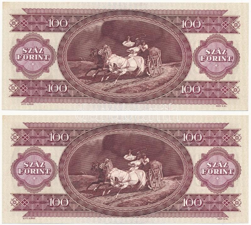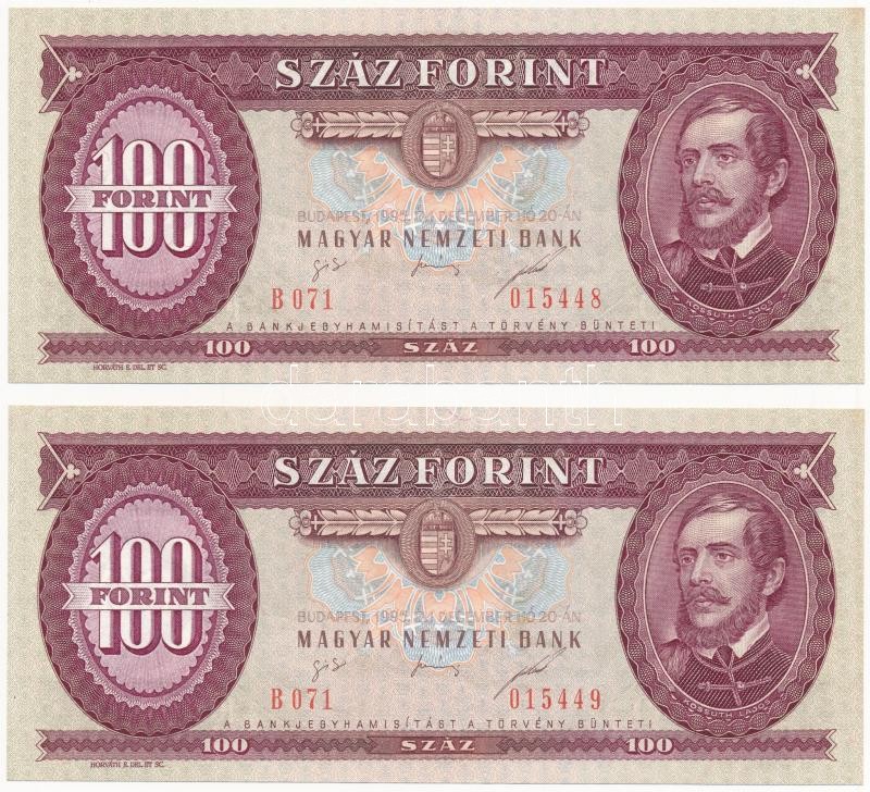 1995. 100Ft (2x) "B 071 015448 - B 071 015449" sorszámkövetők T:I Adam...