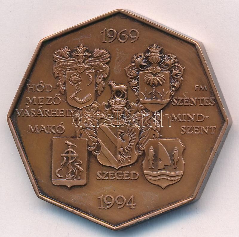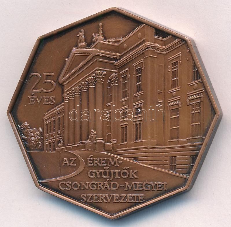 Description: Fritz Mihály (1947-) 1994. "25 éves az Éremgyűjtők Csongrád-megyei Szervezete / Hódmezővásárhely Makó Szentes Mindszent Szeged 1969-1994" kétoldalas bronz emlékérem, nyolcszögletű változat (42,5mm) T:1-