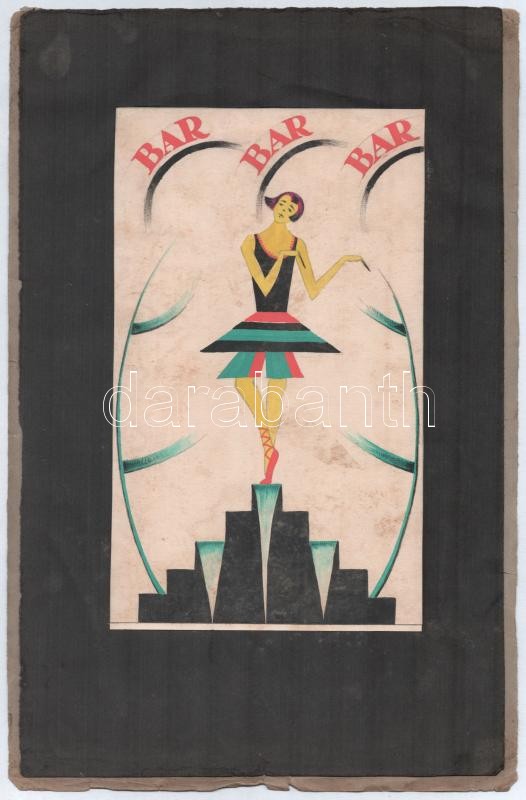 Jelzés nélkül: Bar bar bar (táncosnő). Akvarell, ceruza, tus, papír, papírra kasírozva. Art deco rajz, 1925-30 körül. Kissé foltos. 23x14 cm.