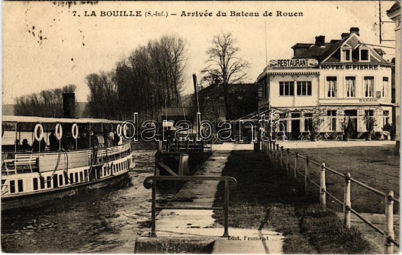 La Bouille, Arrivée du Bateau de Rouen / arriving steamship, Hotel St. Pierre, Restaurant, Garage (EK)