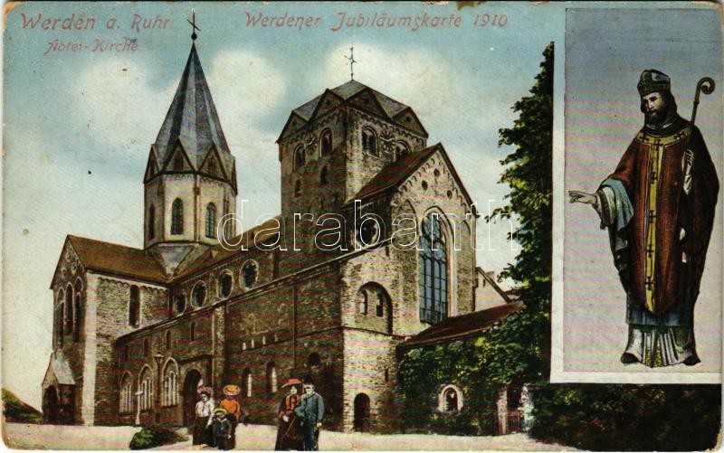 Essen, Werdener Jubiläumskarte 1910. Abtei-Kirche / abbey church (smal...