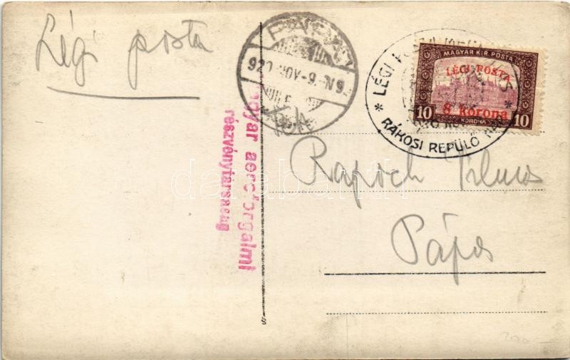 Description: 1920 Budapest I. Déli pályaudvar, Vérmező. Magyar aeroforgalmi részvénytársaság légi felvétele, photo + "Légi Posta Megnyitás Rákosi Repülő Nap" So. Stpl