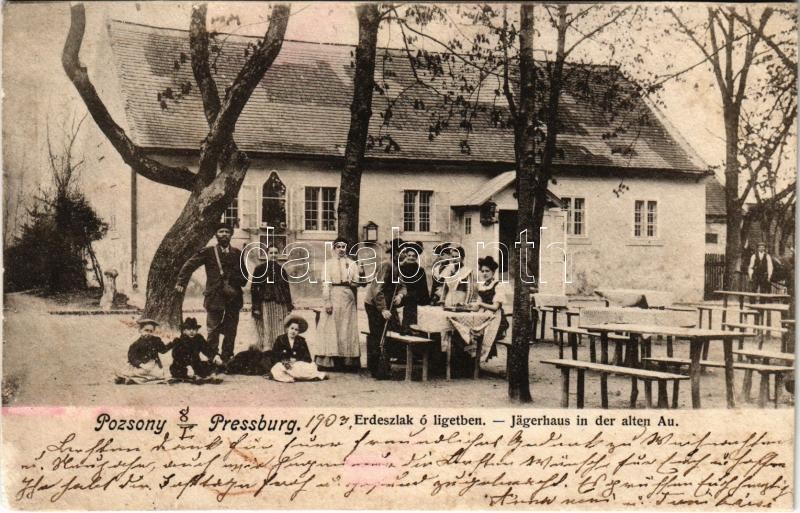 1904 Pozsony, Pressburg, Bratislava; Erdészlak ó ligetben. Bediene dich allein / Jägerhaus in der alten Au / forestry house (r)