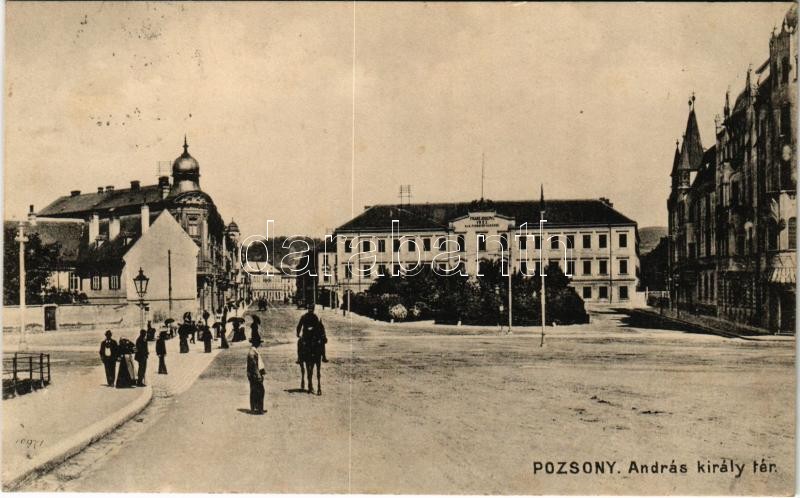 https://www.darabanth.com/en/422-Online-auction/422.0/Postcards/Slovakia~1500006/1910-Pozsony-Pressburg-Bratislava-Andras-kiraly-ter-Hidasz-laktanya-Franz-Joseph-I-Pionee~II2684230