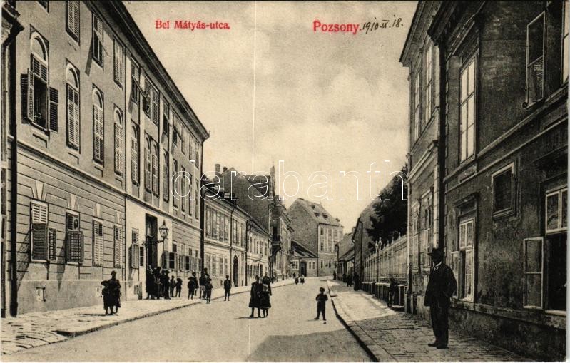1910 Pozsony, Pressburg, Bratislava; Bel Mátyás utca. Sudek Antal kiad...
