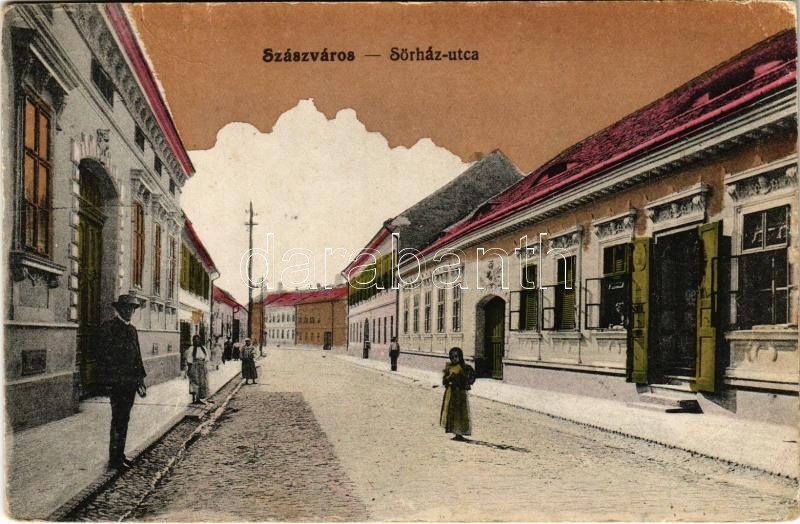 1915 Szászváros, Broos, Orastie; Sörház utca, üzlet / street, shop (EK)