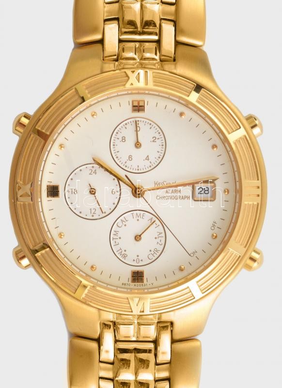 https://www.darabanth.com/en/423-Online-auction/423.0/Art-and-other-collectibles/Watches~31/Yves-Saint-Lauren-noi-arany-szinu-chronograph-ebresztos-datumos-feher-szamlapos-uj-el~II2690699