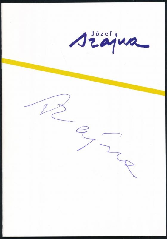 Description: Josef Szajna kiállítási katalógus, 3 db füzet. Mindhárom a művész, Josef Szajna (1922-2008) által aláírt, az egyik dedikált! H.n., 2005, k.n.. Kiadói papírkötés, kiadói kartontokban. / 3 exhibtion catalogues with works by Josef Szajna, on all 3 of them with autograph dedication!