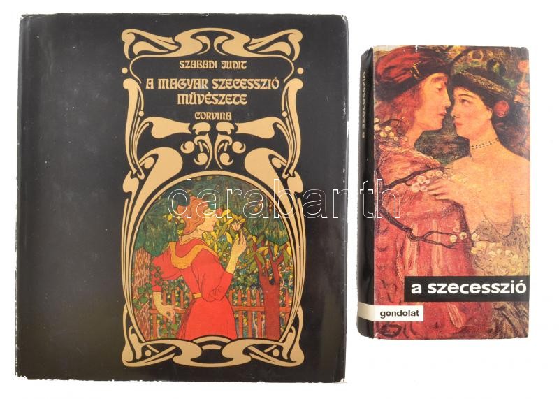 Pók Lajos: A szecesszió. Bp., 1977, Gondolat. Második kiadás. Kiadói egészvászon-kötés, kissé sérült kiadói papír védőborítóban. + Szabadi Judit: A magyar szecesszió művészete. Festészet, grafika, szobrászat. Bp., 1979, Corvina. Egészoldalas képekkel illusztrálva. Kiadói egészvászon-kötés, kissé kopottas kiadói papír védőborítóban.