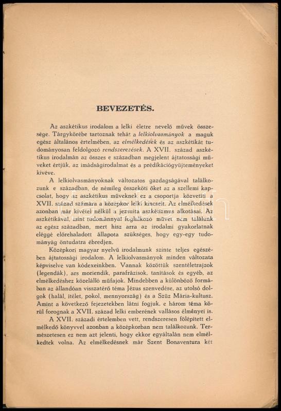 Gulyás István: A XVII. század katolikus aszkétikus irodalma. Palaestra Calasanctiana (A piaristák doktori értekezései az 1932. évtÅ‘l) 26. sz. Bp., 1939, "Élet"-ny., 92+(4) p. Sérült kiadói papÃrkötés, a gerincen ragasztott, helyenként kissé sérült lapszélekkel, a borÃtón és a lapok egy részén sarokhiánnyal.