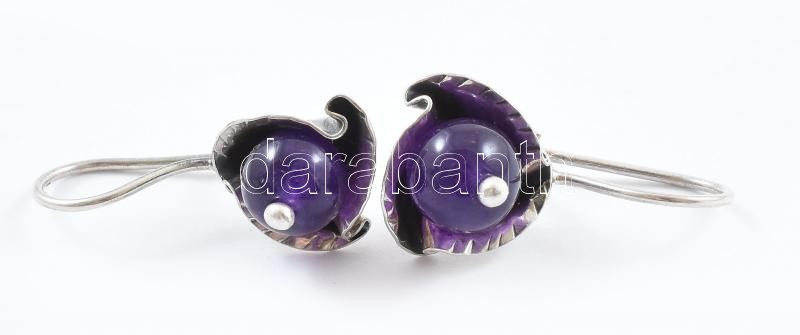 Ezüst (Ag) ametisztes fülbevaló, jelzett, bruttó: 3,53g