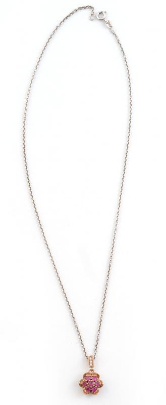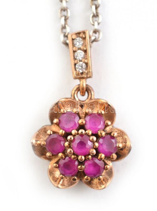 Ezüst (Ag) lánc rubin köves medállal, jelzett, bruttó: 7,22g, h: 46 cm