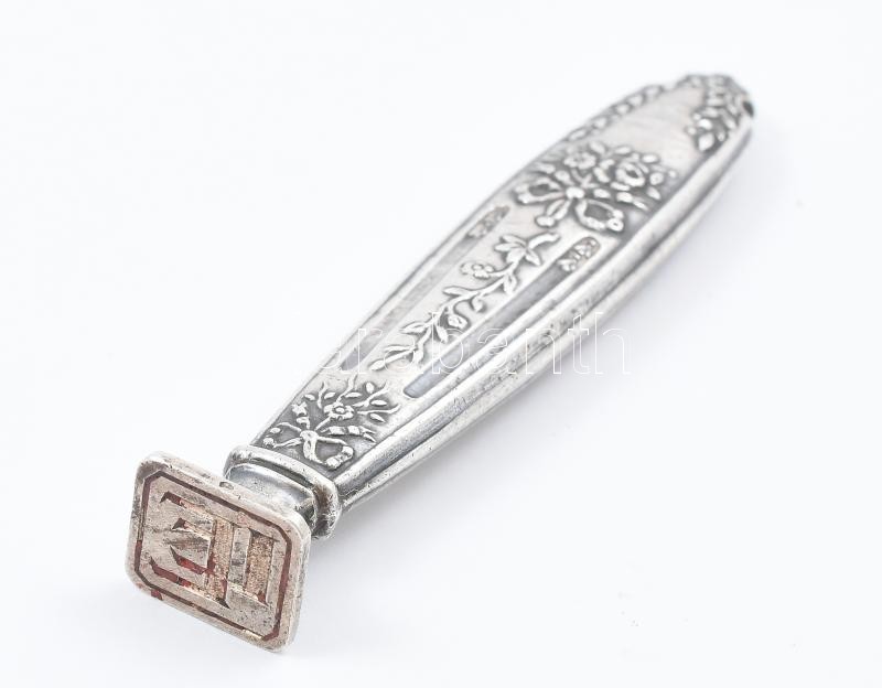 Ezüst (Ag) monogramos pecsétnyomó, jelzett, m: 9 cm, nettó: 14 g