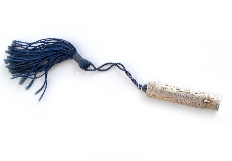 Ezüst (Ag) tűtartó. Hévíz gravírozással 35 mm, 6,4 g
