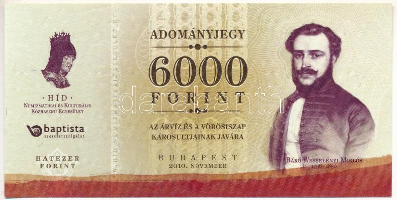 https://www.darabanth.com/en/423-Online-auction/423.0/Numismatics/Emergency-Coins-and-Notes~6000006/Budapest-2010-6000Ft-Adomanyjegy-az-arviz-es-a-vorosiszap-karosultjainak-javara-TI-I-~II2686963