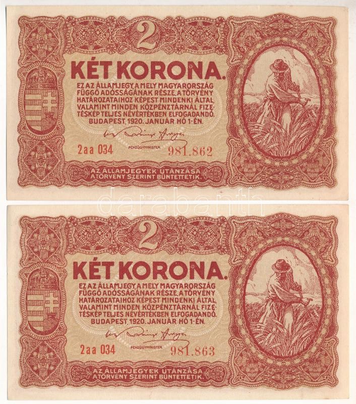 https://www.darabanth.com/en/423-Online-auction/423.0/Numismatics/Hungarian-Banknotes~6000007/1920-2K-2aa-2x-sorszamkovetok-TII-Adamo-K7~II2688564