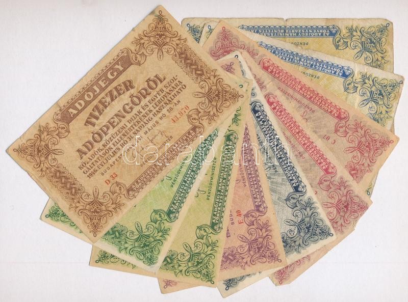 1946. 10.000AP + 50.000AP (2xklf) + 100.000AP + 500.000AP + 1.000.000AP (2x) vízjeles, fordított címerrel + 10.000.000AP (2x) T:III,III- közte folt, szakadás, anyaghiány