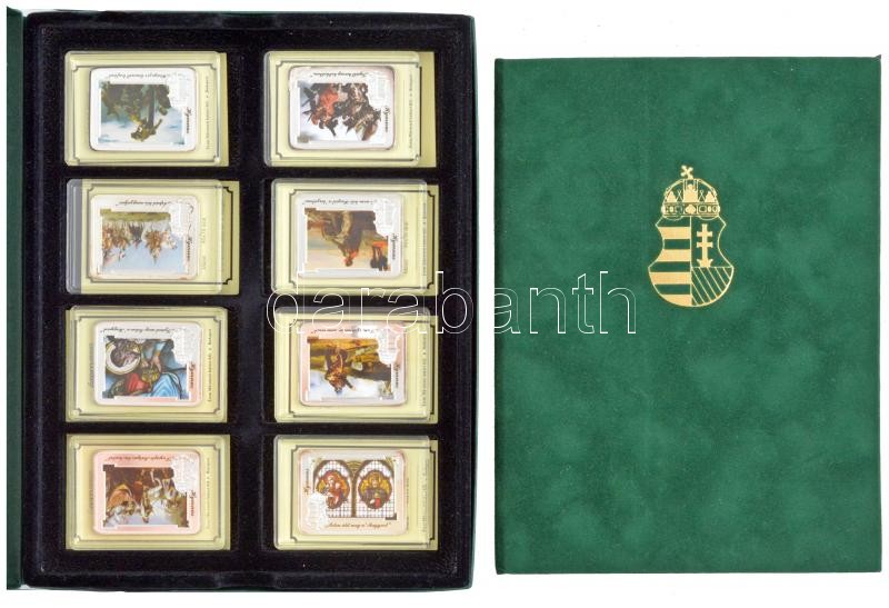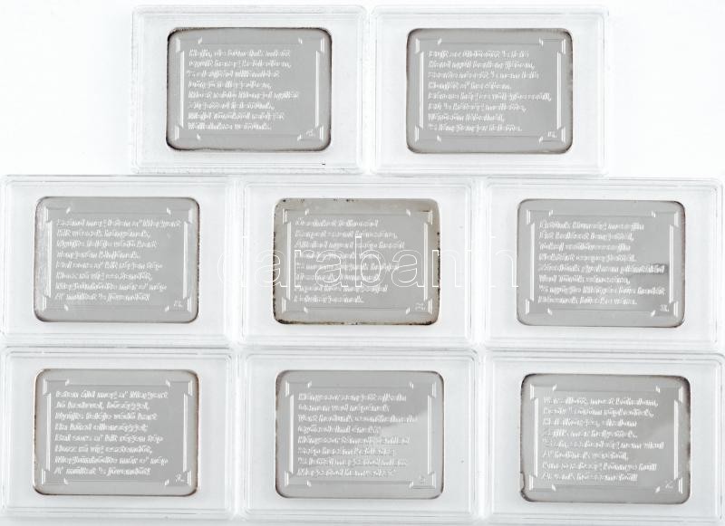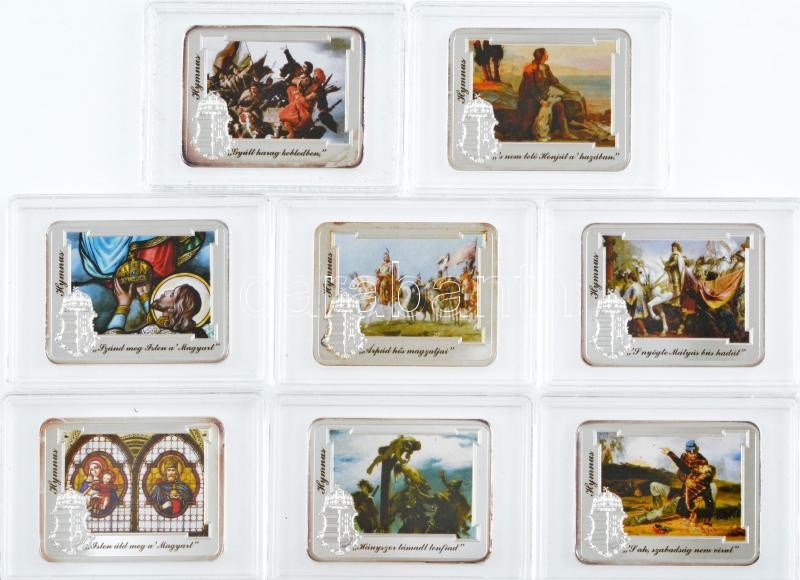 DN "A Himnusz emlékérmeken 1-8. versszak" ezüstözött, festett rézötvözet emlékérmek (8xklf) tanúsítvánnyal, tájékoztatóval, tulajdonosi oklevéllel, eredeti díszdobozban (36x46mm/db) T:PP patina