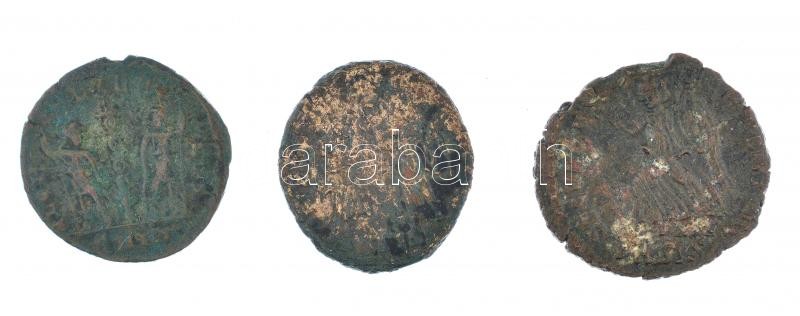 Római Birodalom 3db-os bronz érmetétel, benne Constantius és Valens T:...
