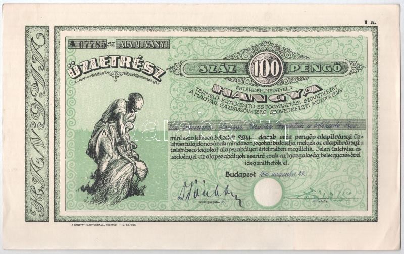 https://www.darabanth.com/en/423-Online-auction/423.0/Numismatics/Shares-and-Tickets~6000005/Budapest-1940-Hangya-Termelo-Ertekesito-es-Fogyasztasi-Szovetkezet-nevre-szolo-alapit~II2676310