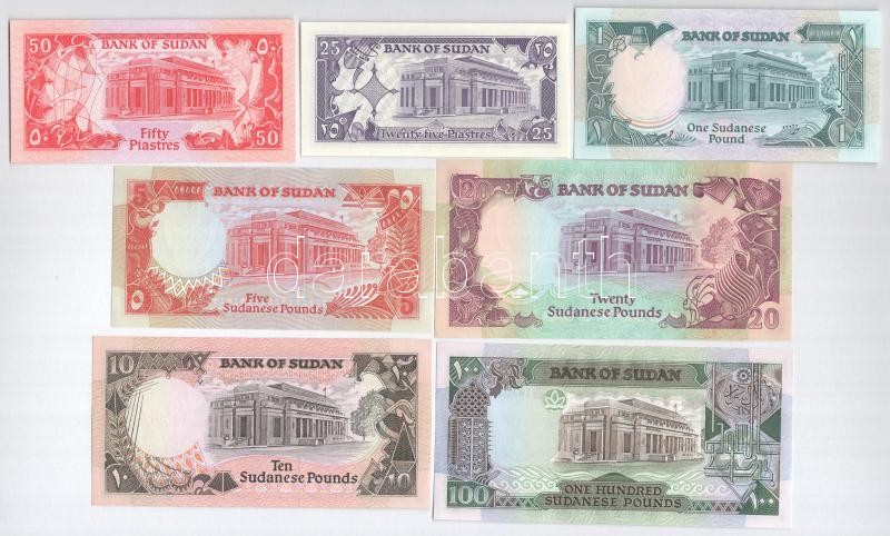 Sudan 1987-1991. 25 Piastres - 100 Pounds (7xdiff) C:UNC,AU wavy paper