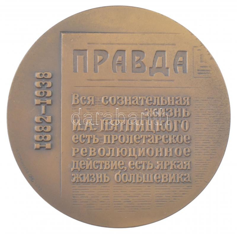 https://www.darabanth.com/en/423-Online-auction/423.0/Numismatics/Worldwide-commemorative-medallions-and-plaques~6000016/Szovjetunio-1982-Osip-Piatnitsky-1882-1938-Pravda-ketoldalas-bronz-emlekerem-60mm-T1-~II2671743