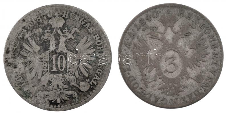 Description: Ausztria 1840A 3kr Ag "I. Ferdinánd" + 1870. 10kr Ag T:3 patina