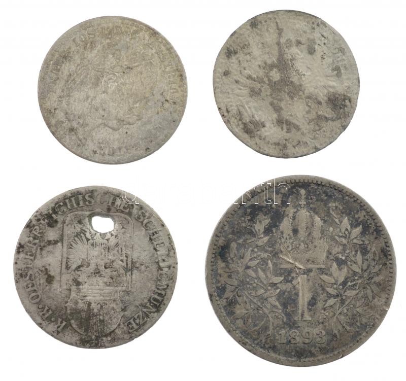 Ausztria 1849A 6kr Ag (ly.) + 1870. 10kr Ag "Ferenc József" (2x) + 1893. 1K Ag "Ferenc József" T:3,3-