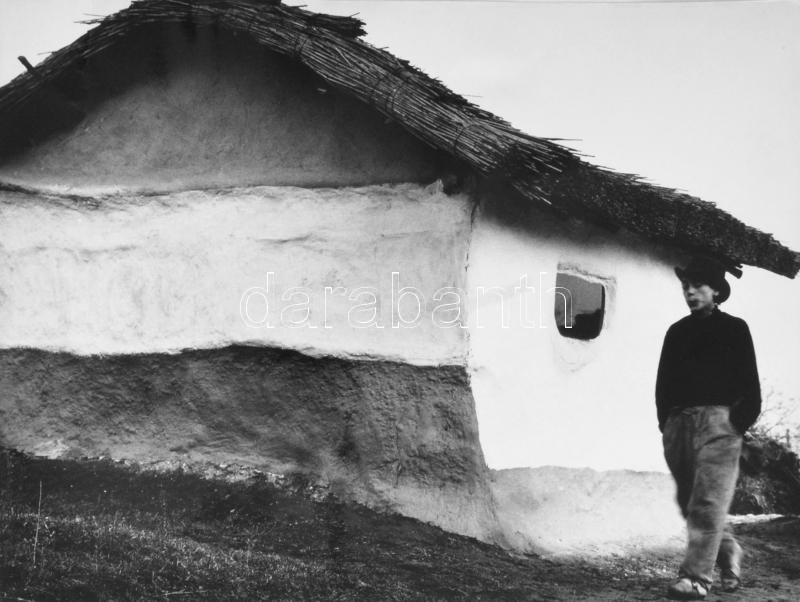 Csák Miklós (1933-2013): Régi nádtetős vályogház. Jelzetlen, nagyméretű fotó, 40x30 cm