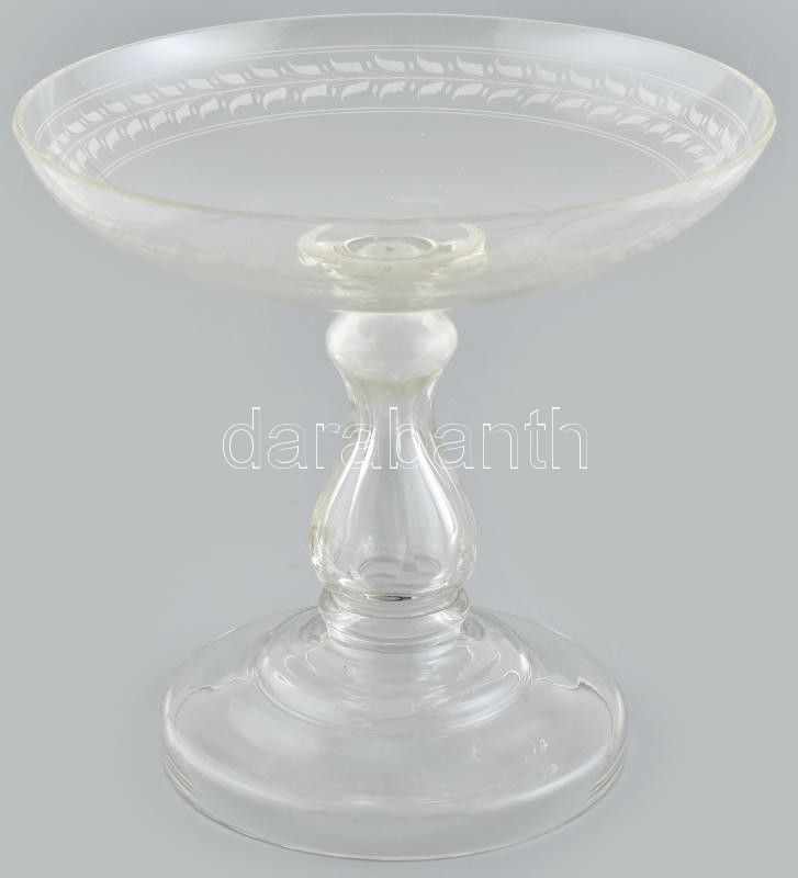 Gyümölcs kínáló. Metszett üveg. d: 22 cm, m: 21 cm hibátlan