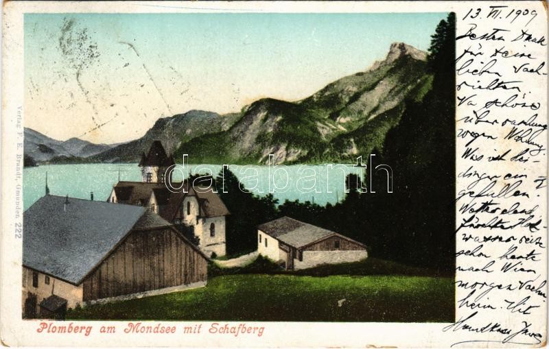 1909 Plomberg am Mondsee mit Schafberg (EK)
