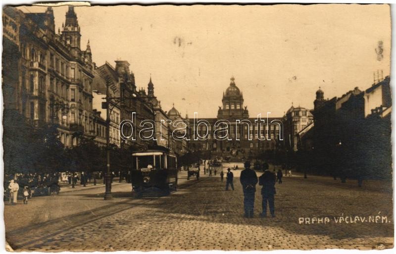 1920 Praha, Prag; Václav nám. / square, tram, The Mutual (Rb)