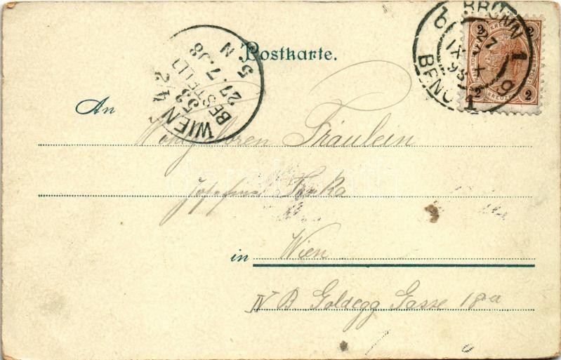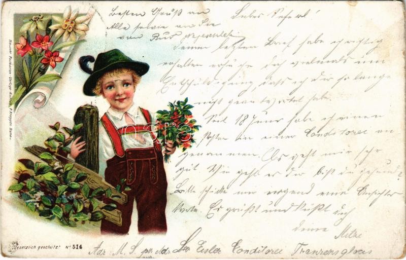 1898 (Vorläufer!) Greeting card with boy and flowers. Art Nouveau, litho (EK)