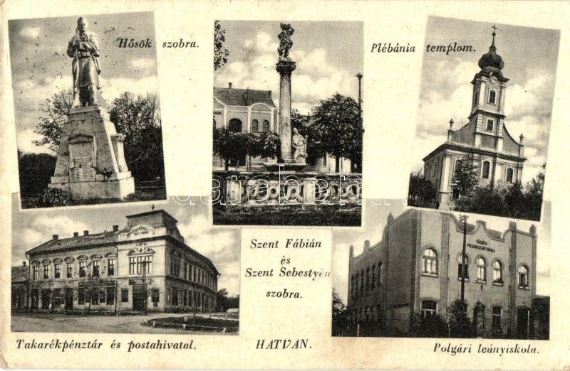 Hatvan, Hősök szobra, Polgári leányiskola, takarékpénztár, postahivata...