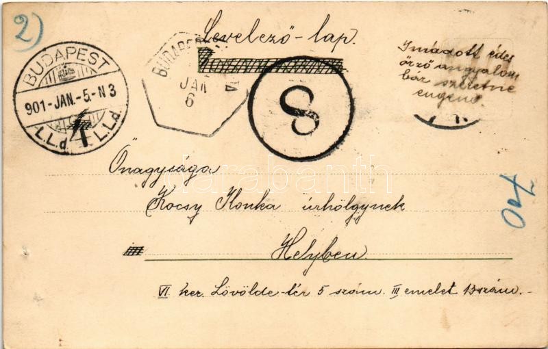 1901 Lady art postcard, angel. litho (lyuk / pinhole)