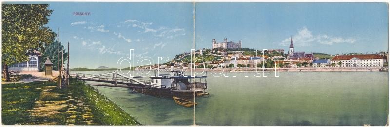 1916 Pozsony, Pressburg, Bratislava; Dunapart, vár, hajó. Két részes kinyitható panorámalap / Danube riverside, castle, ship. 2-tiled folding panoramacard