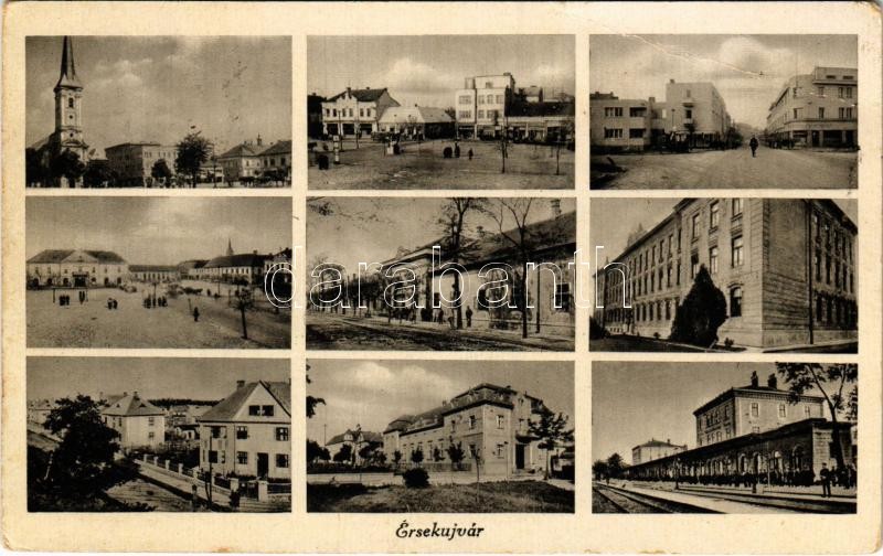 1940 Érsekújvár, Nové Zámky; mozaiklap vasútállomással / multi-view po...