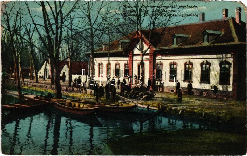 1915 Zimony, Semlin, Zemun; Stanica magyarski parobroda / Ung. Schiffsagentur / Magyar Hajózási Ügynökség / Hungarian ship agency (EM)