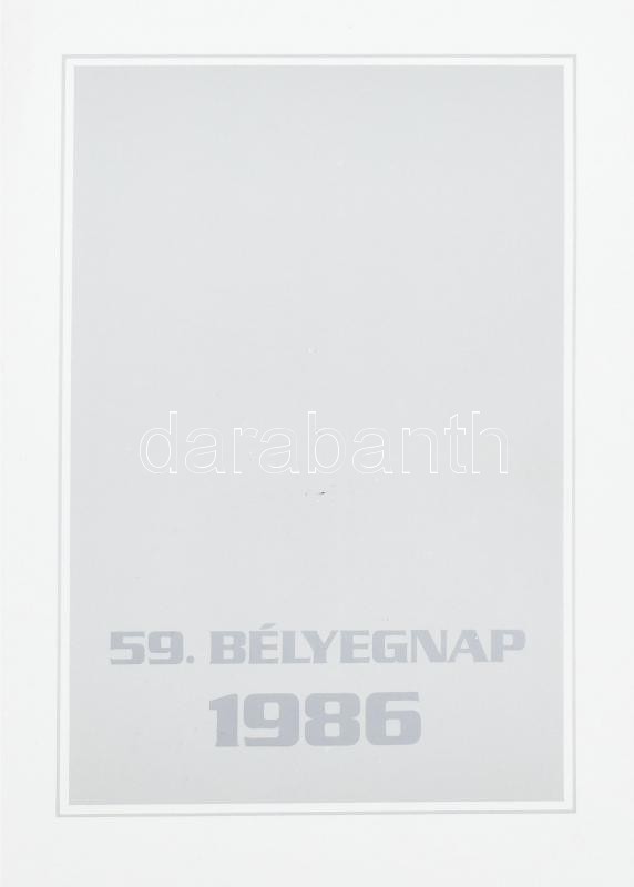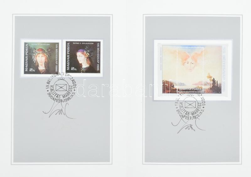 1986 Bélyegnap sor és blokk emléklapon, a tervező grafikus Szász Endre aláírásával