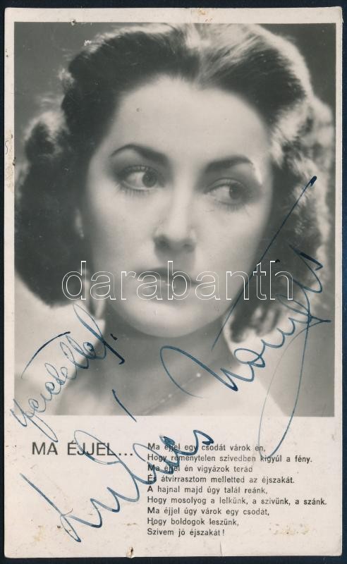 Lukács Margit (1914-2002) színésznő autográf dedikálással ellátott fotólap