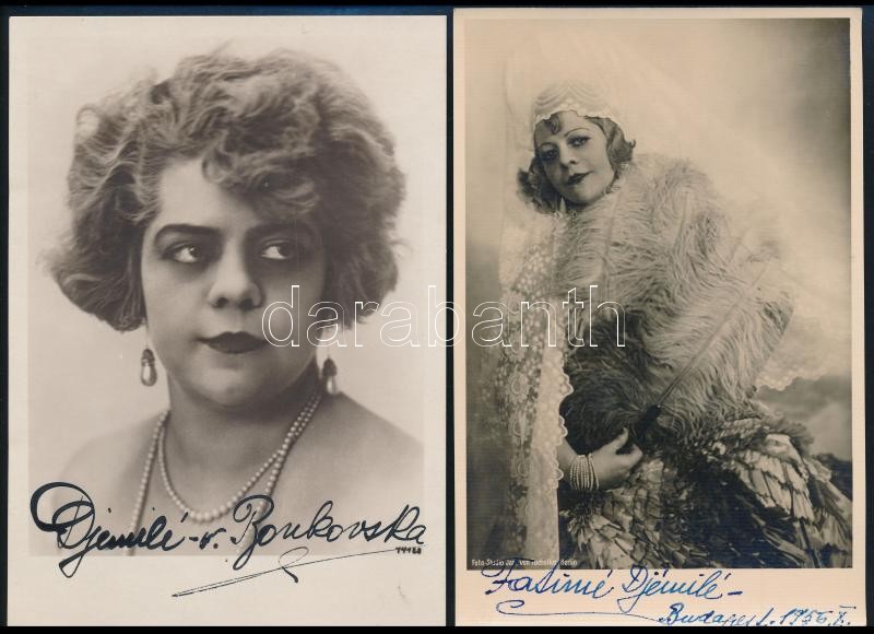 cca 1930-1956 Agnes Bonkovska azaz Fatma Djémilé de Bonkowska török és magyar operaénekesnő 2 db dedikált fotólapja