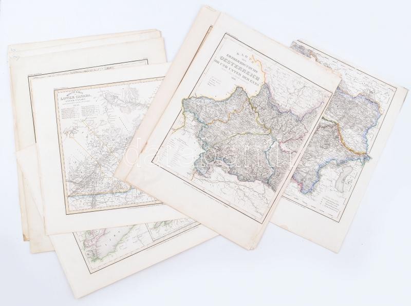 cca 1840 9 térképlap: világtérkép, Ausztria, Kanada, Ilinois, Bohémia ...