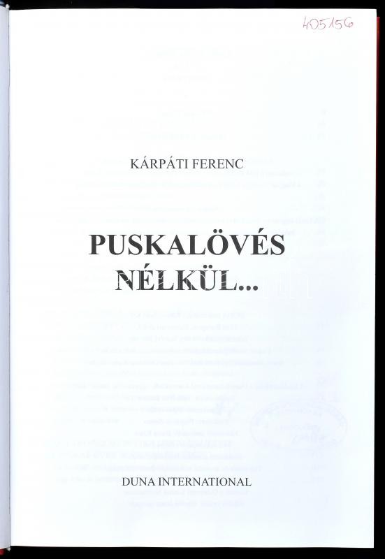 Kárpáti Ferenc: Puskalövés nélkül... Bp., én., Duna International. Gazdag képanyaggal illusztrált. Kiadói kartonált papírkötés, volt könyvtári példány.
