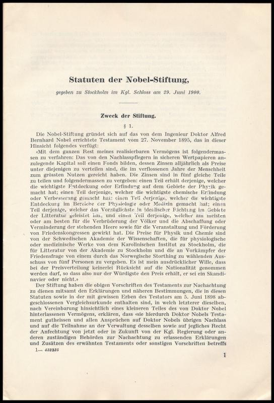 Statuten der Nobelstiftung und Sondersatzungen betreffend den Preis fü... https://www.darabanth.com/en/424-Online-auction/424.0/Books/Books-Natural-sciences-Medicine~2000014/Statuten-der-Nobelstiftung-und-Sondersatzungen-betreffend-den-Preis-fur-Physiologie-und-Medizin-Ka~II2697567