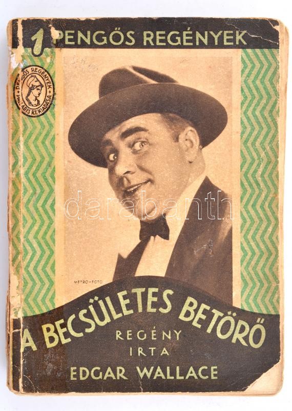 Wallace, Edgar: A becsületes betörő. Ford.: Wiesner Juliska. Pengős Regények. Bp., [1932], Palladis Rt., 255+(1) p. Kiadói papírkötés, sérült borítóval, a borítón ragasztófoltokkal.