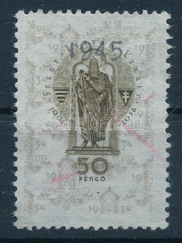1934 50P okmánybélyeg 1945-ben felhasználva, a katalógus nem említ ily...