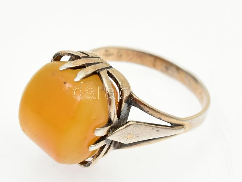 Ezüst(Ag) gyűrűk borostyánnal, jelzett, méret: 54, bruttó: 3 g