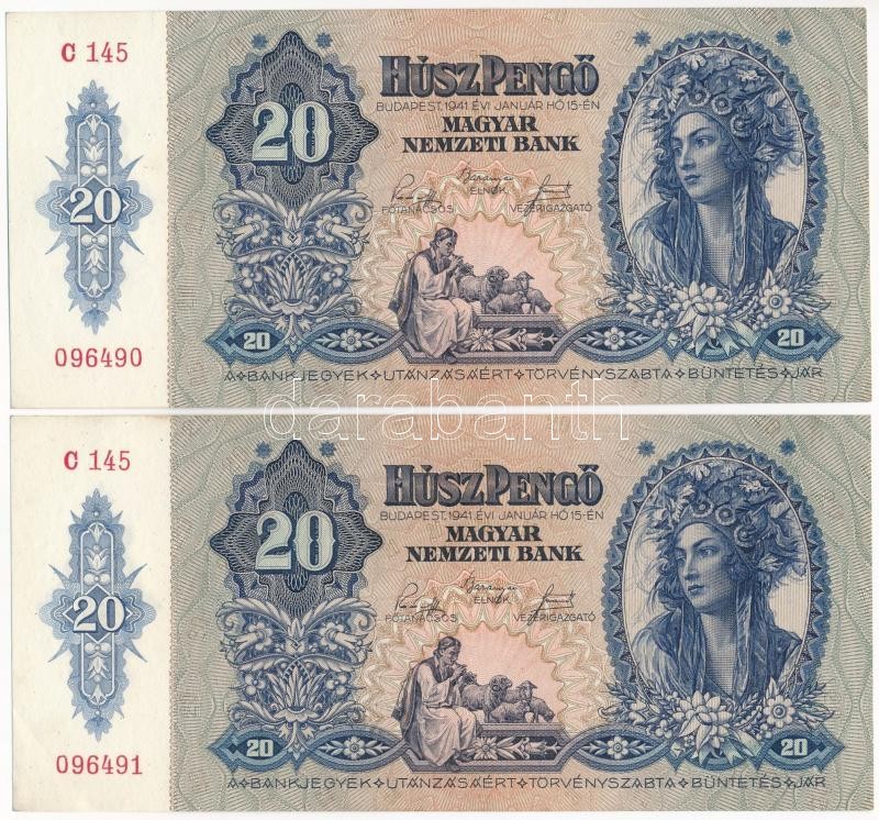 1941. 20P (2x) sorszámkövetők "C 145 096490 - C 145 096491" T:II,II- Adamo P12
